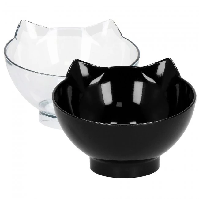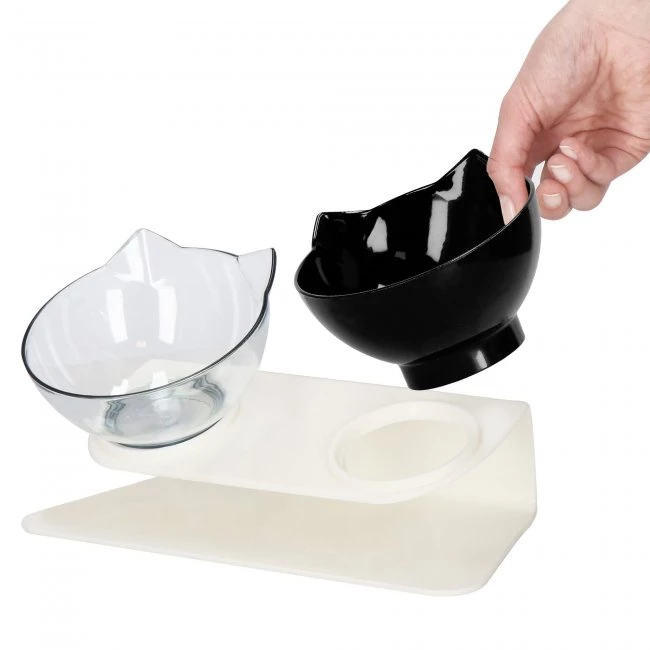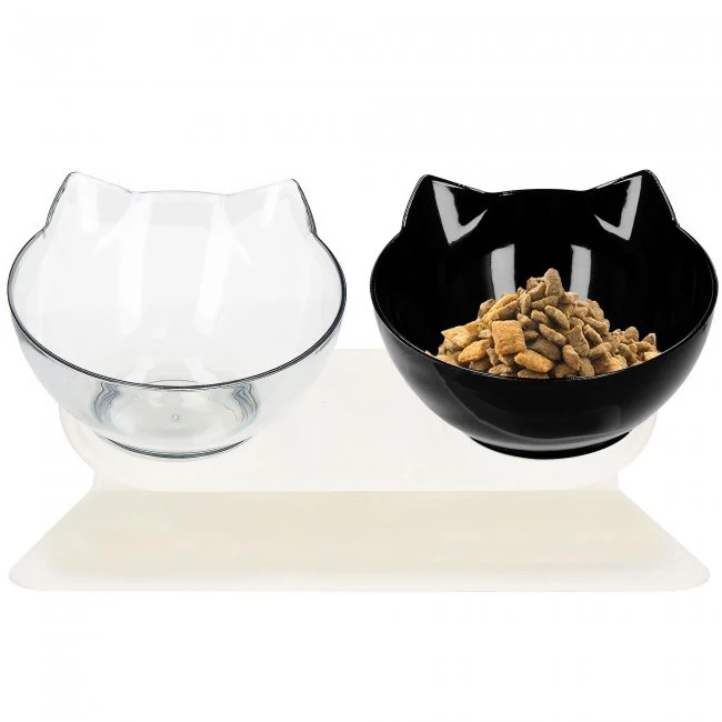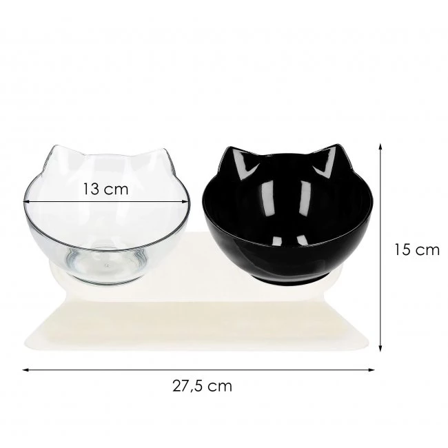 Dvojitá miska pre psa a mačku s protišmykovým dnom - čierna/priesvitná