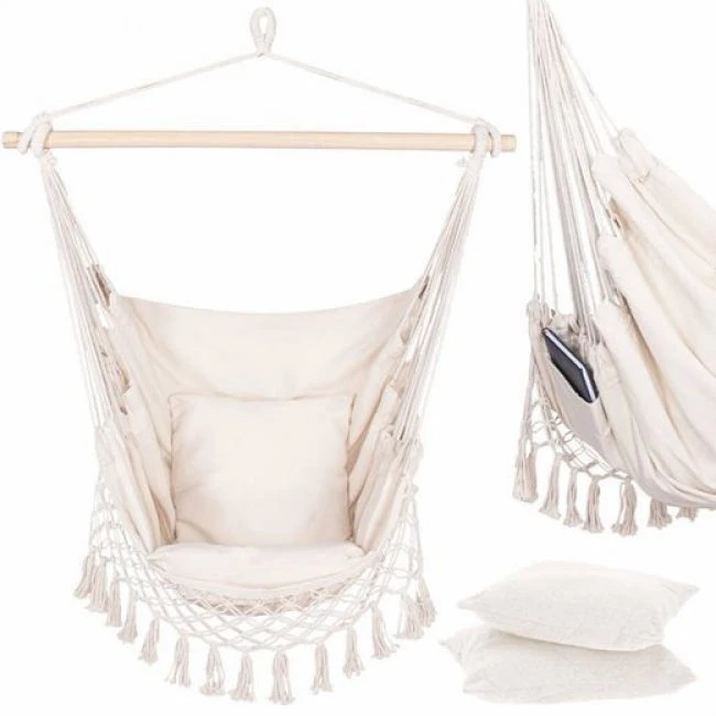 Závesné kreslo Springos s vankúšmi bude pre vás ako stvorené, ak si ceníte kvalitu a starostlivé spracovanie. Bude dobre fungovať v teplých, slnečných dňoch - v tieni stromu alebo na terase. Je to jeden z najobľúbenejších záhradných doplnkov, ktorý dobre poslúži doma alebo na balkóne. Ak si radi z času na čas doprajete chvíľu relaxu, pri šálke teplej kávy alebo dobrej knihe, je toto kreslo práve pre vás!