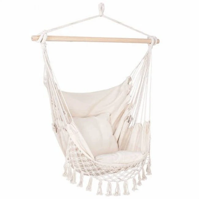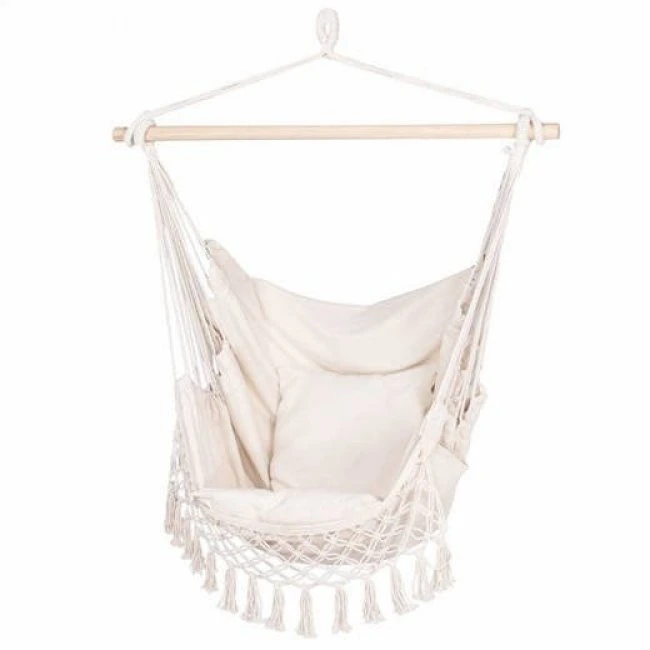 Hojdacie kreslo Brazílske s vankúšikmi 130x100cm - krémové
