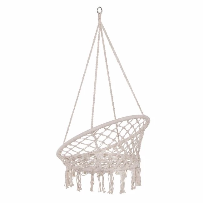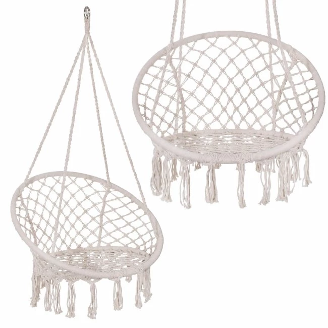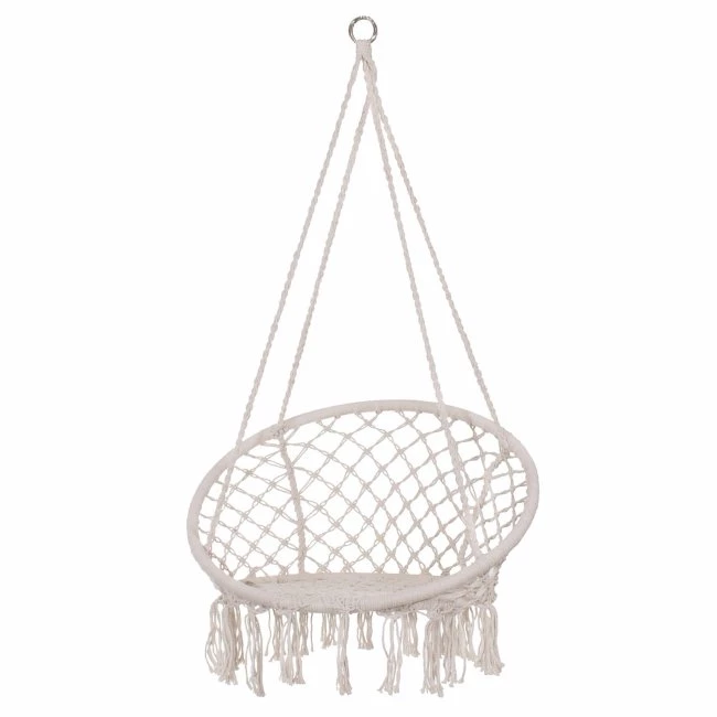 hojdacie kreslo s operadlom a so strapcami - 60x60x44cm - krémové