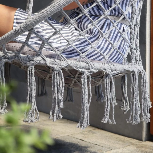 hojdacie kreslo s operadlom a so strapcami - 60x60x44cm - sivé