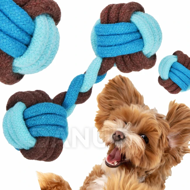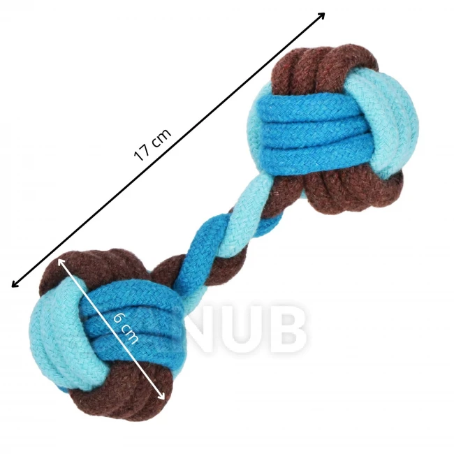 Hračka pre psa - lano s uzlami - 17 cm - hryzátko - modro-hnedé
