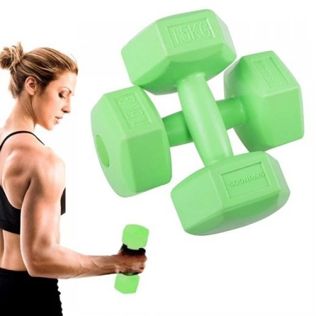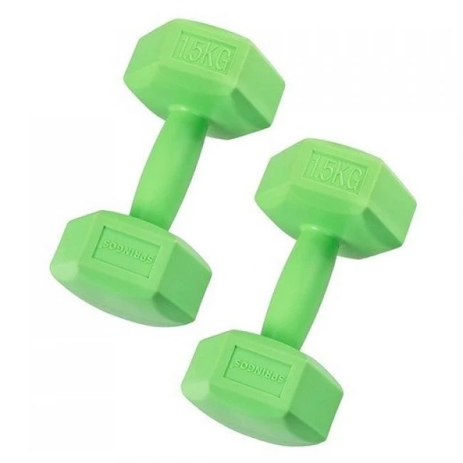 SPRINGOS Jednoručné činky 1,5kg zelené - 2ks