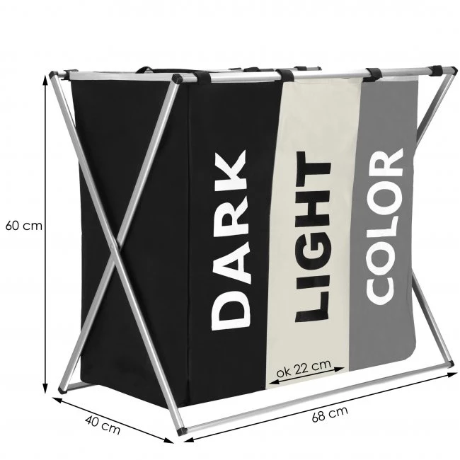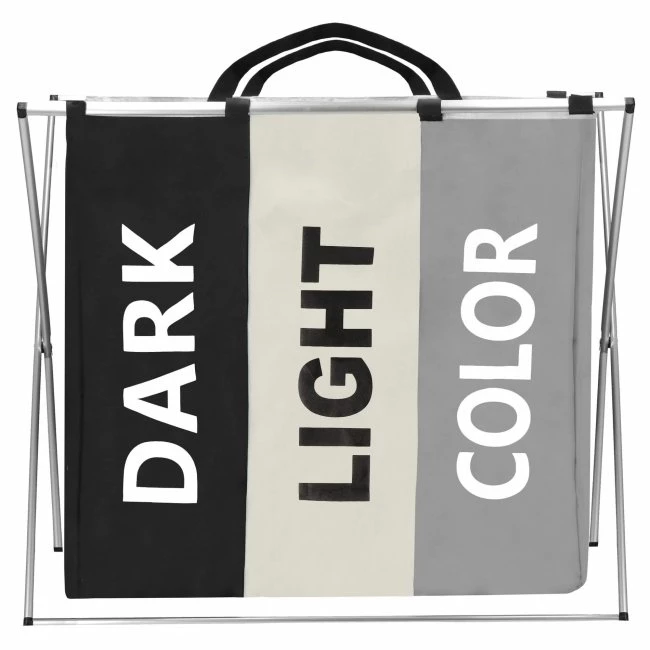 Kôš na bielizeň trojitý - 146 L - skladací - čierno/béžovo/sivá