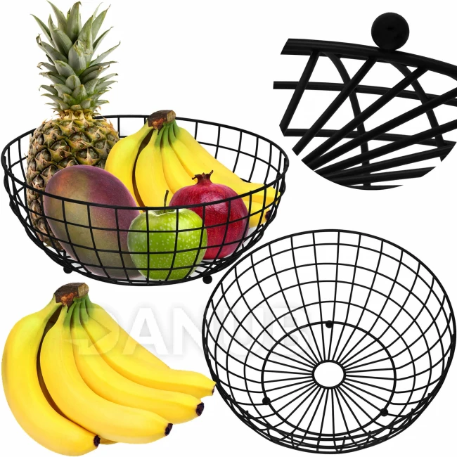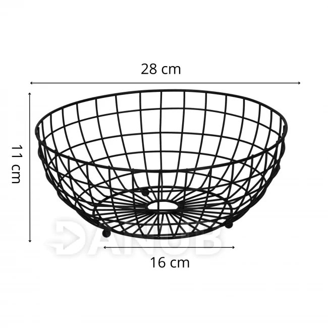 Košík na ovocie - kovový - 28x11 cm - čierny