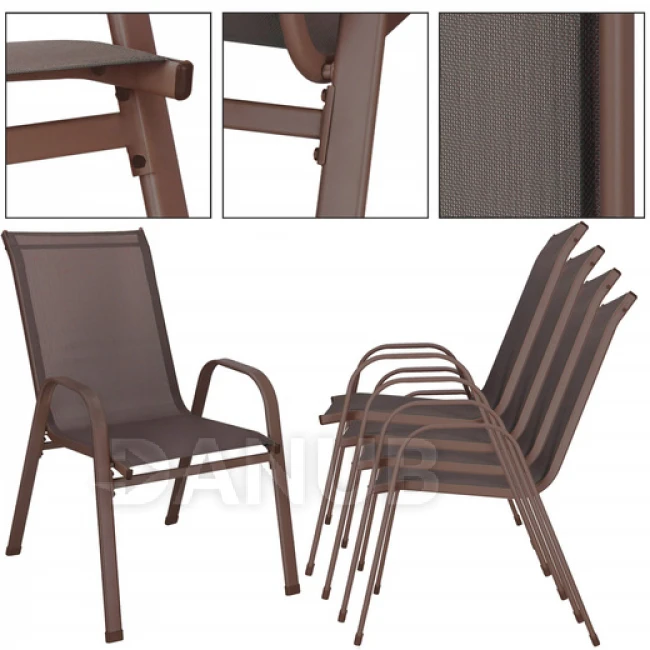 Stohovateľná záhradná stolička - hnedá - 4ks