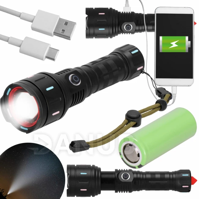- Typ: Multifunkčná teleskopická baterka so zoomom