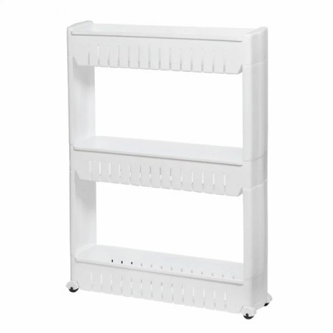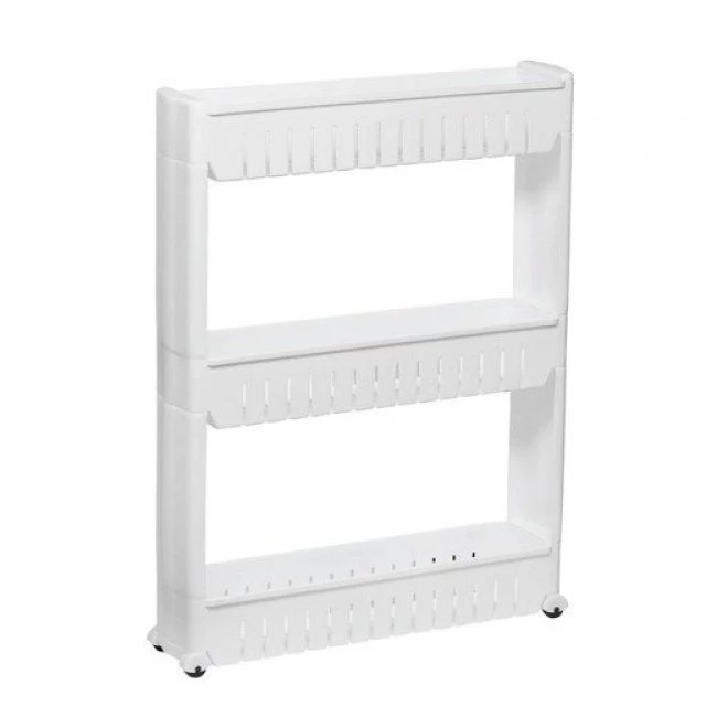 Mobilná kúpeľňová skrinka na kolieskach 3 úrovne - biela