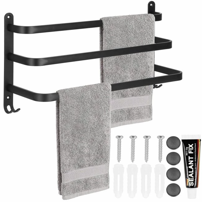Nástenný držiak na uteráky do kúpeľne - trojitý - hliník - čierny