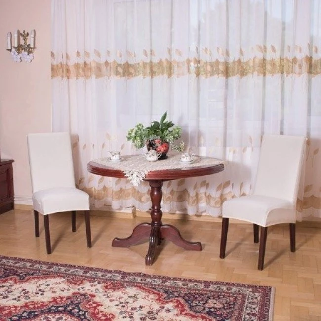 Nepriehľadná tkanina dodá vašim stoličkám nový vzhľad. Zloženie materiálu obsahuje spandex, ktorý zaisťuje pružnosť a prispôsobenie návlekov, a spodná šitá guma umožňuje ich dokonalé držanie v správnej polohe. Produkt bol vyrobený s maximálnou starostlivosťou v najvyššej kvalite, aby uspokojil každého.