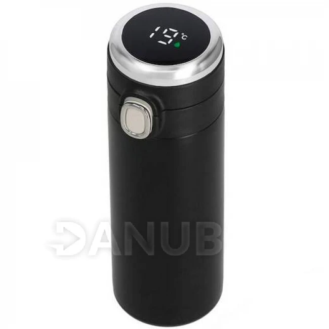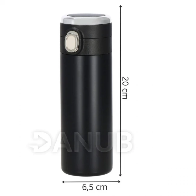 Nerezová termoska na kávu a čaj - s ukazovateľom teploty - čierna - 350 ml