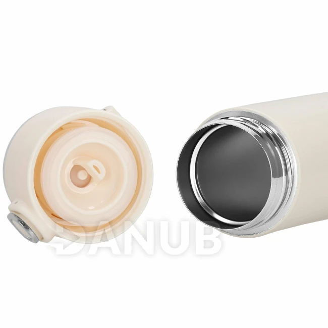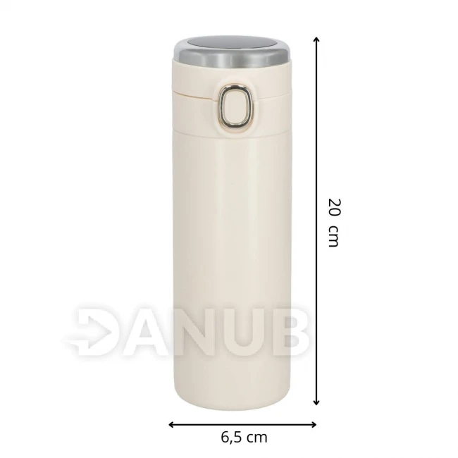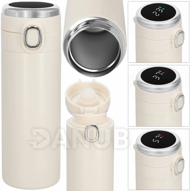 Nerezová termoska na kávu a čaj - s ukazovateľom teploty - krémová - 420 ml