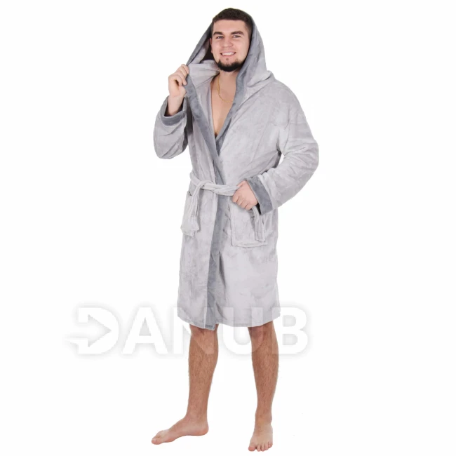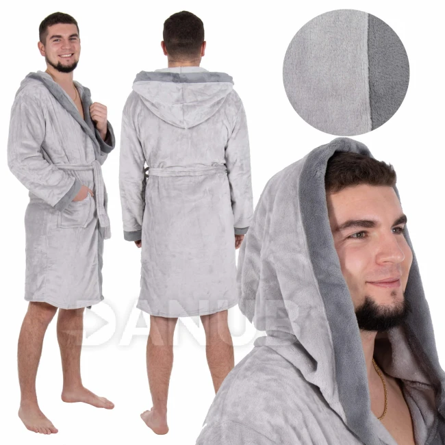 Pánsky plyšový župan s kapucňou - L/XL - sivý