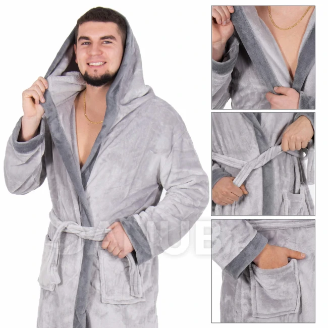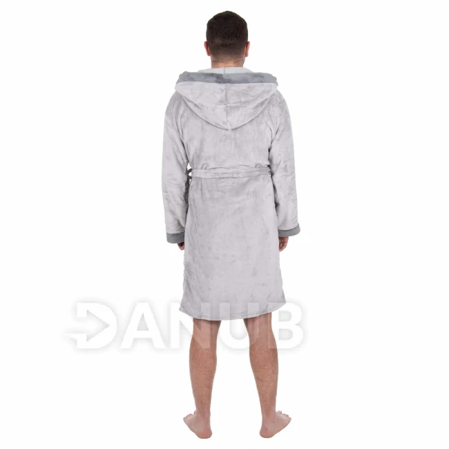 Pánsky plyšový župan s kapucňou - M/L - sivý