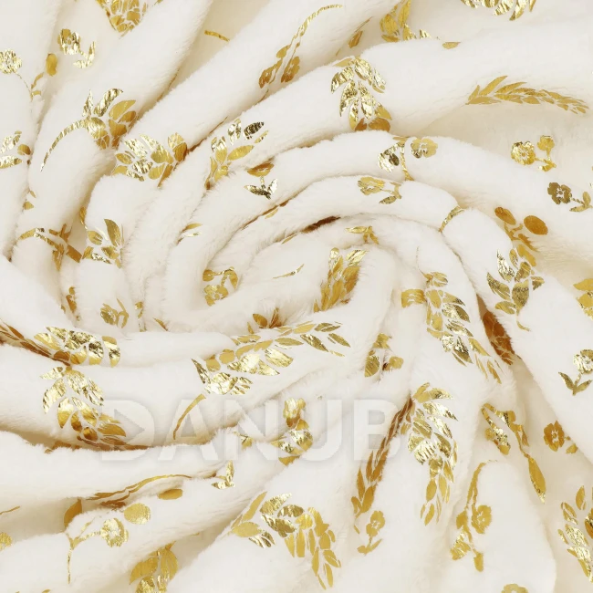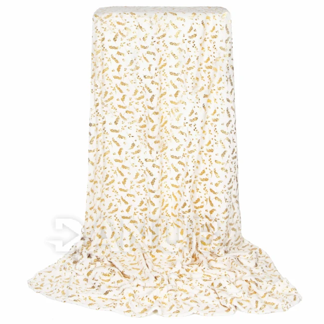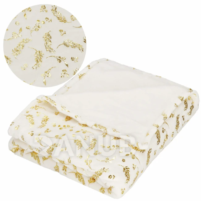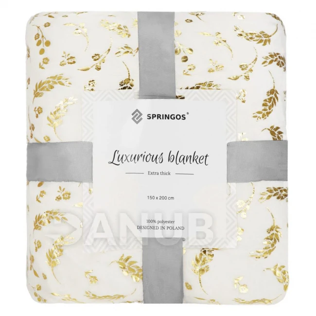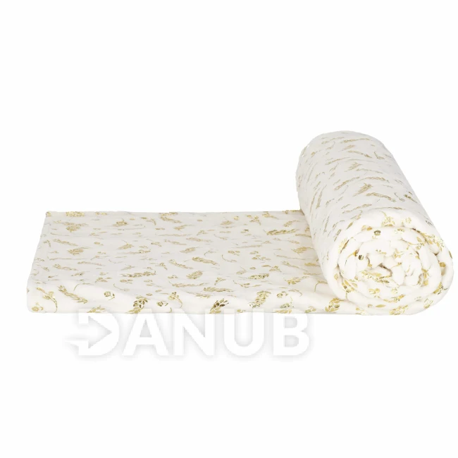 Plyšová deka LUX - 150x200cm - krémová + zlaté listy