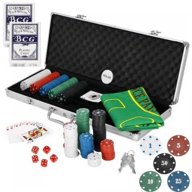 Pokerový set - kufrík + 500 žetónov + kocky + podložka