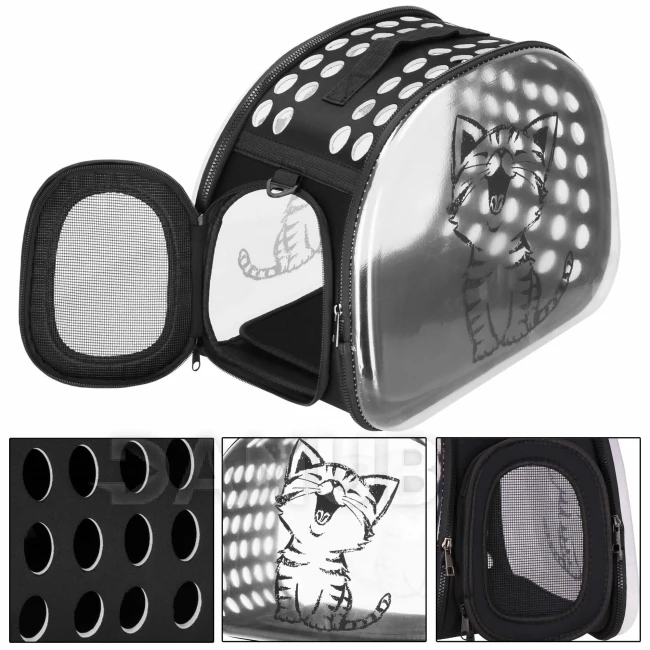 - Pevné bočné steny z priehľadného materiálu, každá s potlačou mačiek