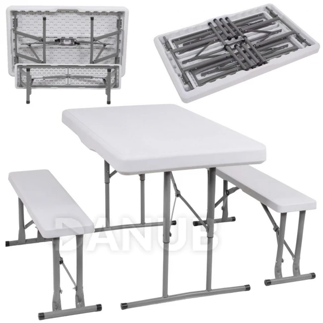Rozkladací stôl s lavičkami - 105x65x69 cm - biela