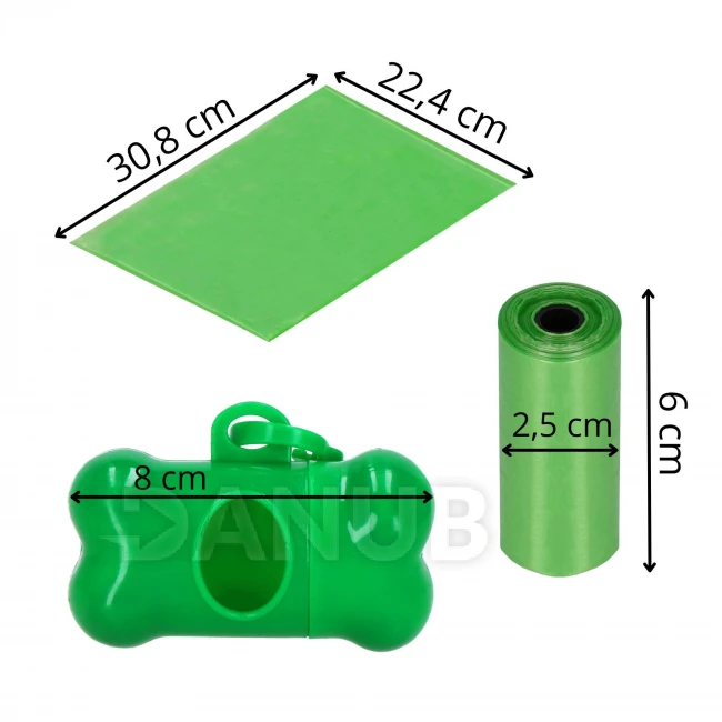 Sáčky na psie exkrementy - 432 ks - 24 roliek - 6x2,5 cm - zelená