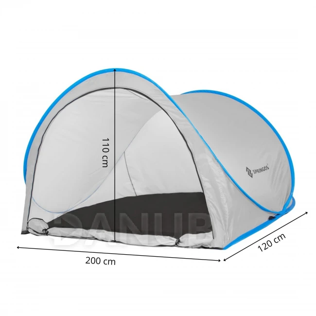 Samorozkladací plážový Pop up stan 200x120 cm - sivo modrý
