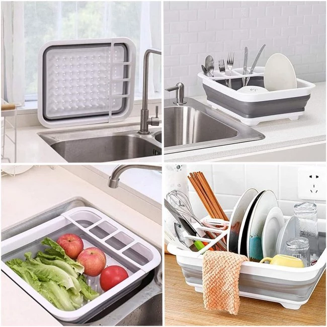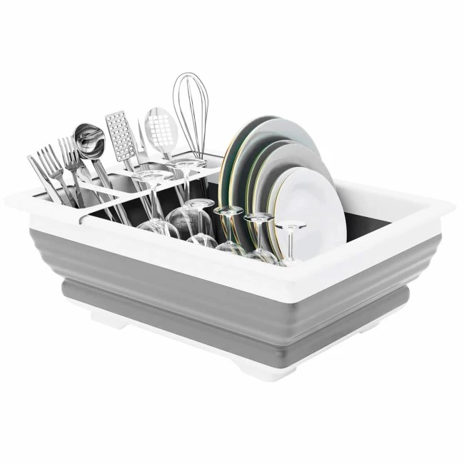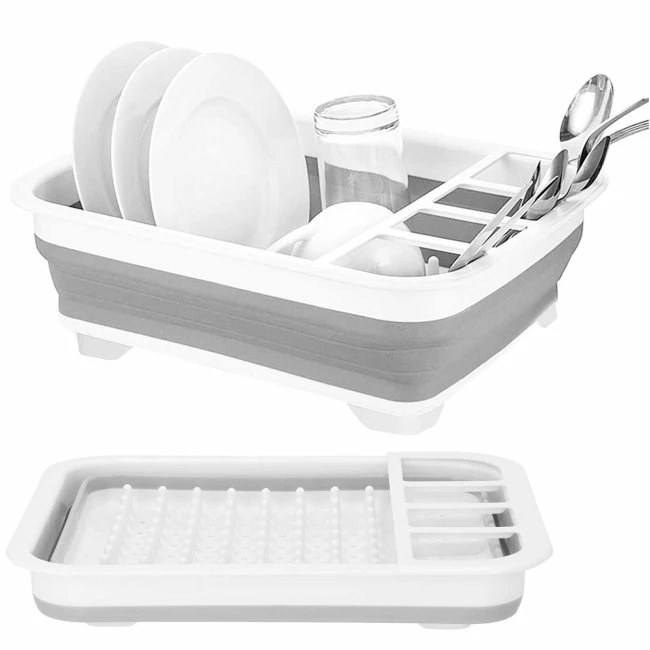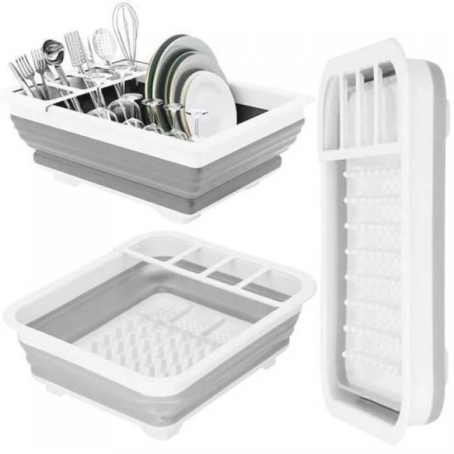 Silikónový odkvapkávač na riad a príbory - skladací, sivobiely