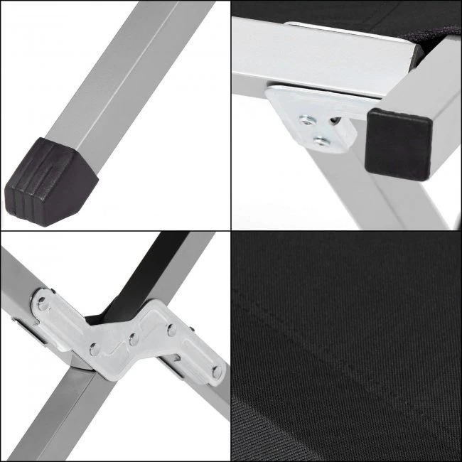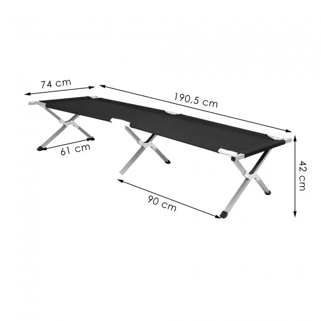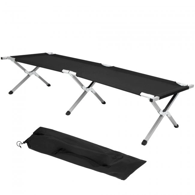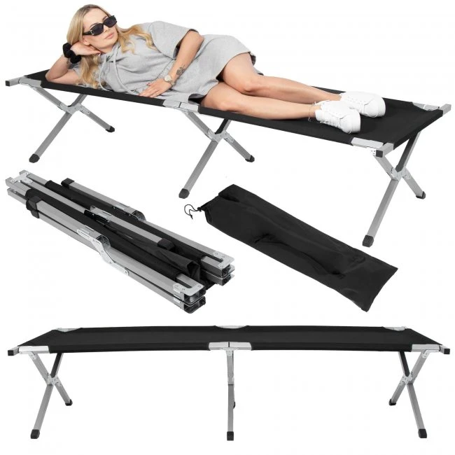 Skladacia cestovná posteľ kempingová - do 150 kg - čierna