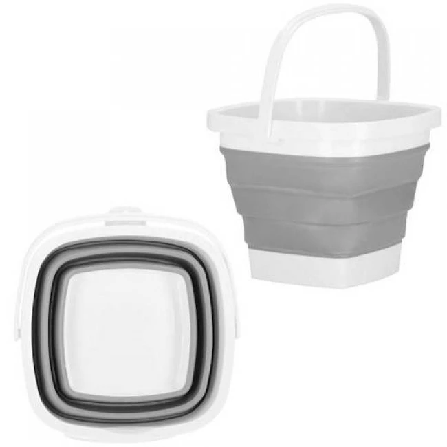 Skladacie vedro silikónové hranaté - 10L - sivo-biele