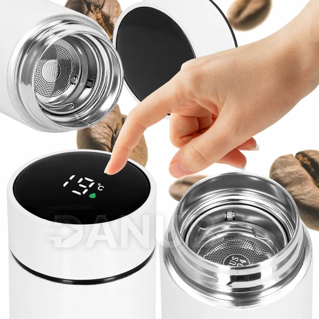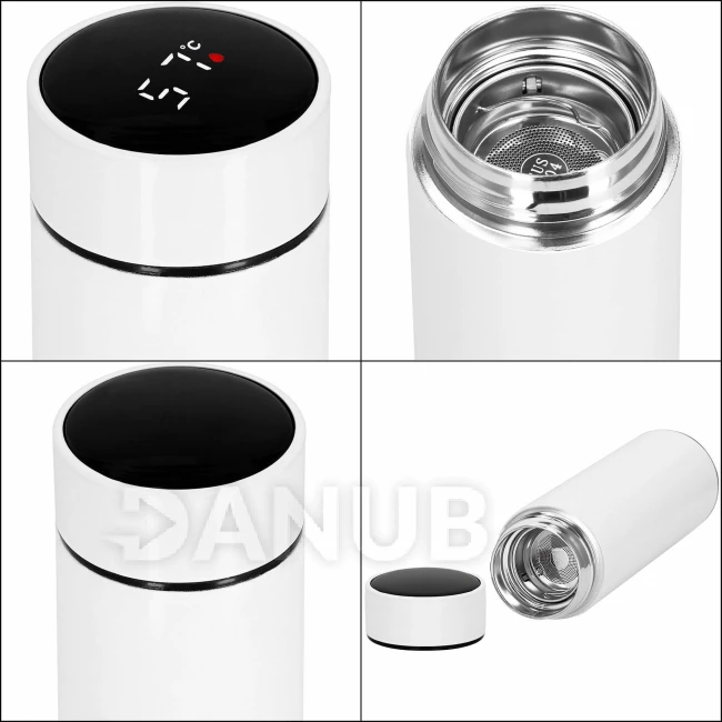 Termoska s ukazovateľom teploty - nerez - 500 ml - biela