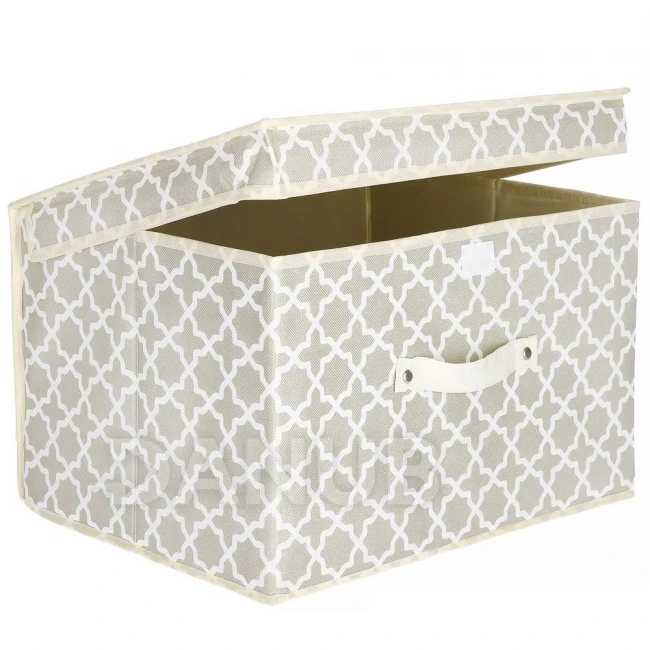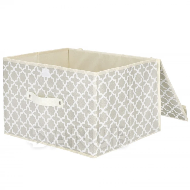 Úložný box s vekom - 25x40x30cm - marocká ďatelina na béžovej