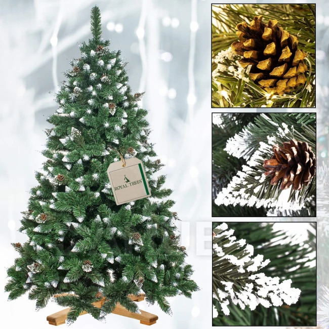 Umelý vianočný stromček Premium Royal Trees - 220 cm - zasnežená diamantová borovica so šiškami