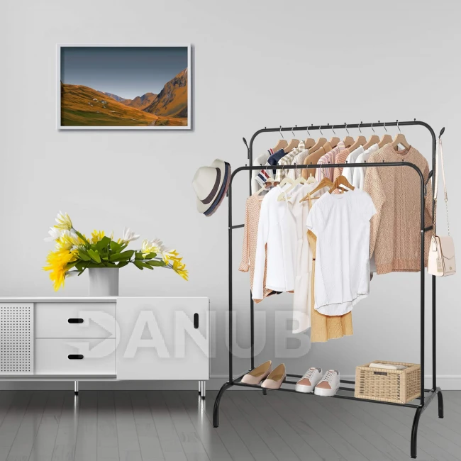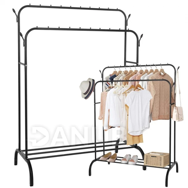Vešiak na oblečenie - dvojitý - 146x110x55 cm - kovový - čierny