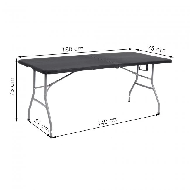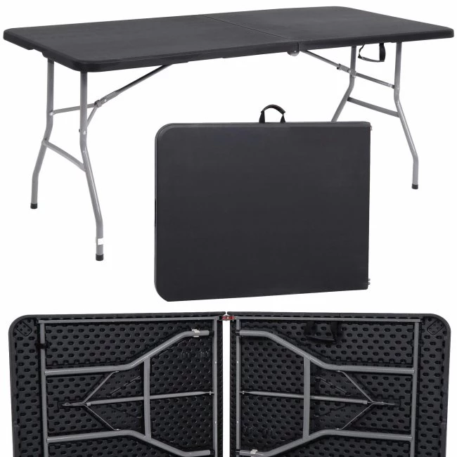 Záhradný cateringový stôl skladací - 180cm - čierny