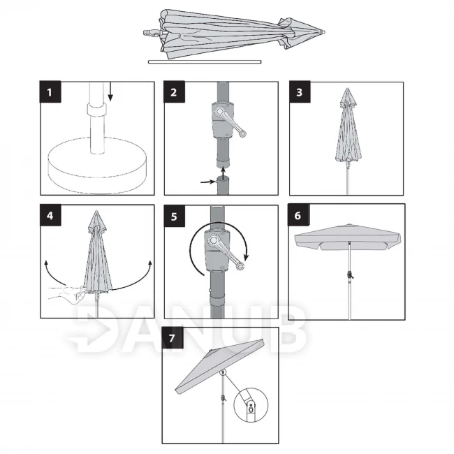 - Rozpätie slnečníka po dĺžke: 195 cm