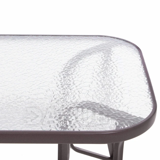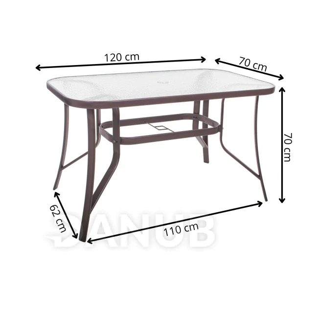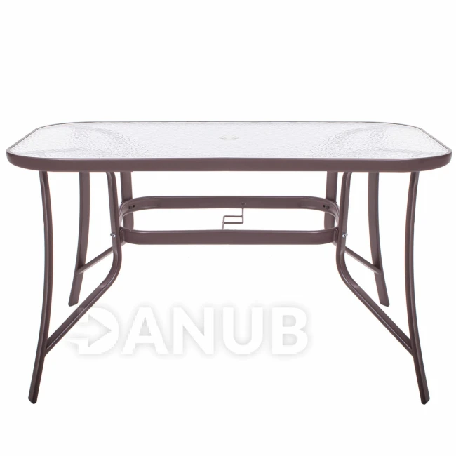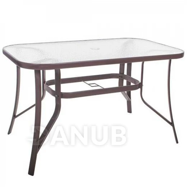Záhradný stolík 120x70x70cm - kov + sklo, hnedý