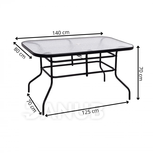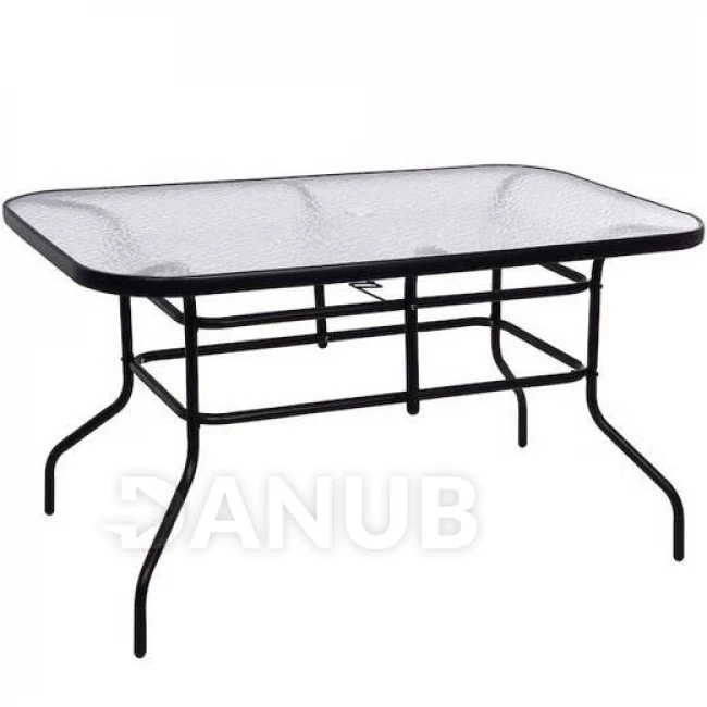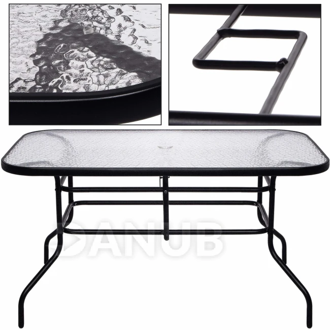 Záhradný stolík 140x80x70cm - kov + sklo, čierny