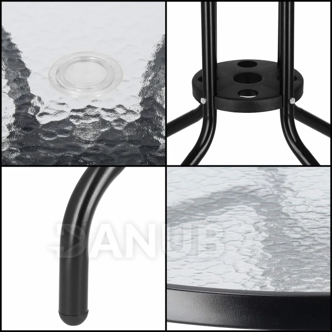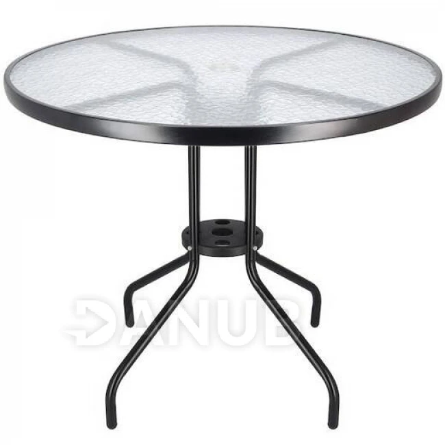 Záhradný stolík 90cm - okrúhly - kov + sklo, čierny