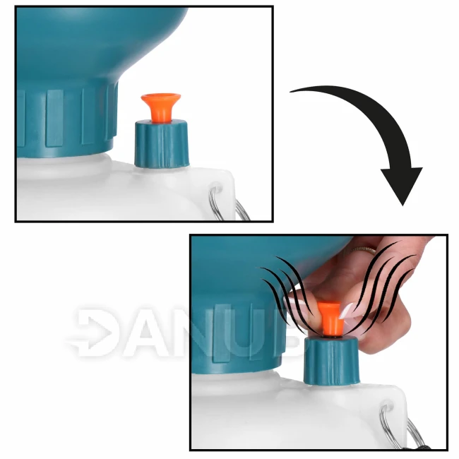 - Oranžový prvok v hornej časti: nahromadený tlak možno ľahko odstrániť zdvihnutím oranžového uzáveru nahor