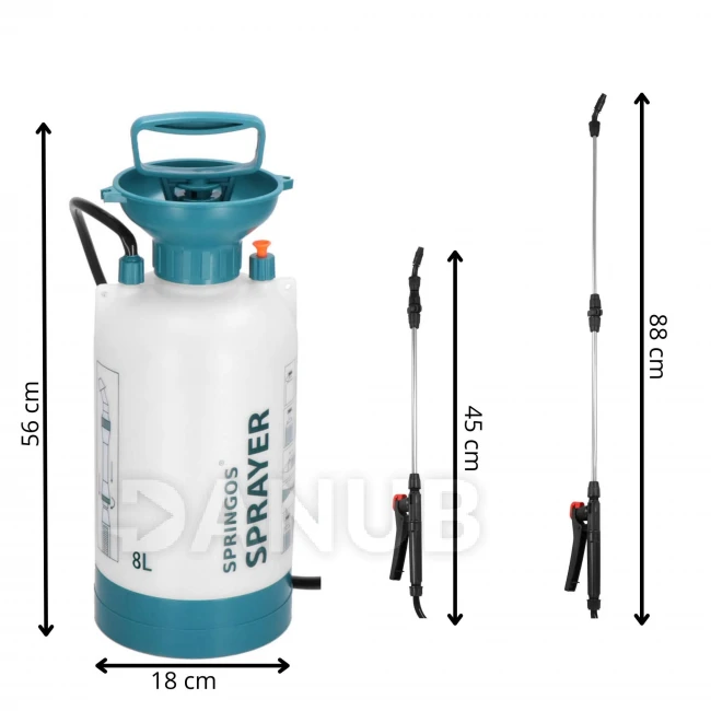 Záhradný tlakový postrekovač na rastliny - ručný - 8L