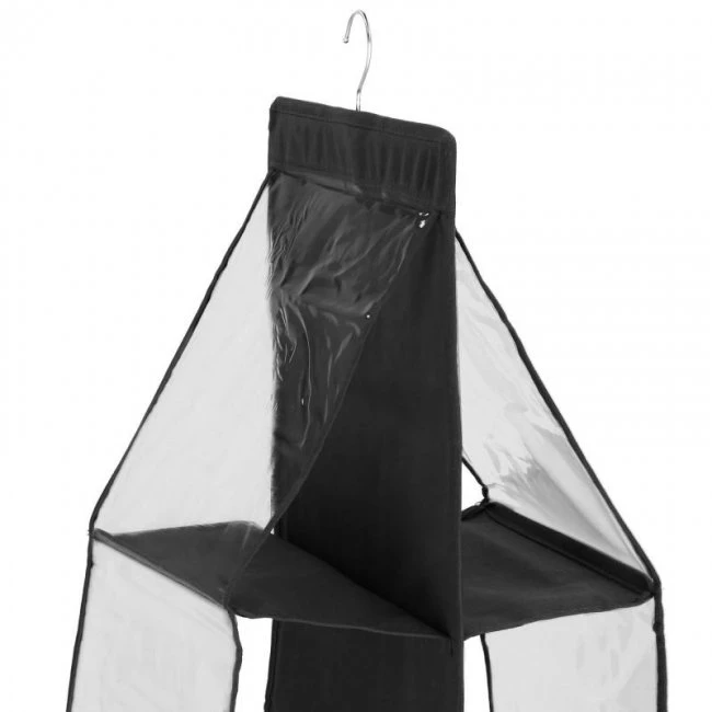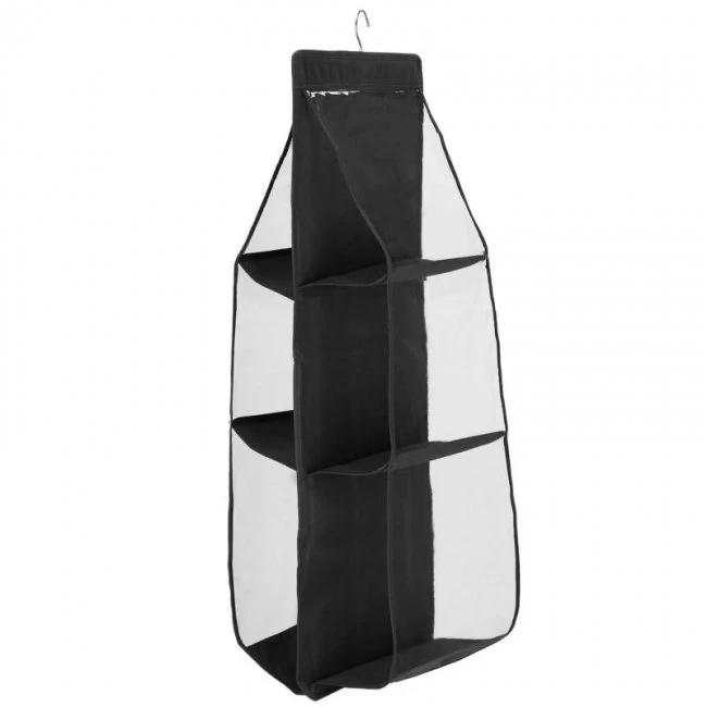 Závesný organizér Springos je skvelou voľbou pre premyslené rozvinutie interiéru šatníka. Výrobok má formu vysúvacej police so 6 policami. Textilný materiál, z ktorého bol organizér vyrobený, je zavesený háčikom. Táto funkcia uľahčuje presun organizérana iné miesta. Výrobok má podlhovastý tvar. Čierne farby sú univerzálnym základom, ktorý je nenápadný a zároveň dokonale plní svoju úlohu. Vďaka nádobe udržíme poriadok v šatníku, čím ušetríme polovicu miesta.