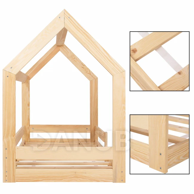 Springps Detská drevená posteľ v tvare domčeka bez nôh - 160x80cm - svetlo-hnedá