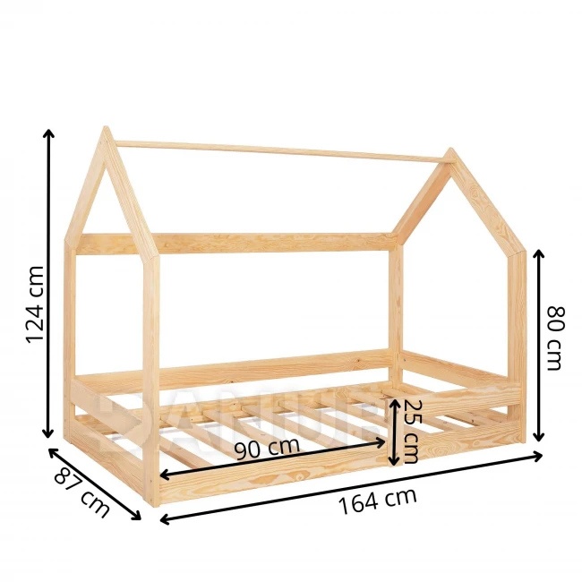 - Typ: detská posteľ v tvare domčeka, ležiaca priamo na zemi (bez nôh)