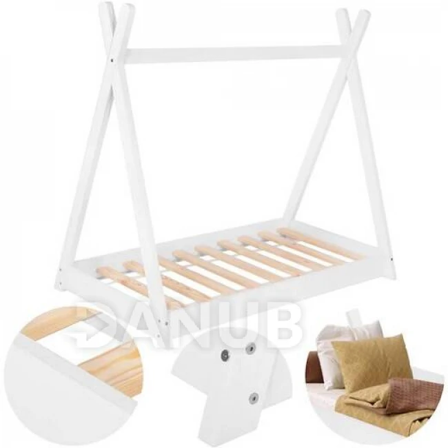 Springps Detská drevená posteľ v tvare Teepee - 145x75cm - biela