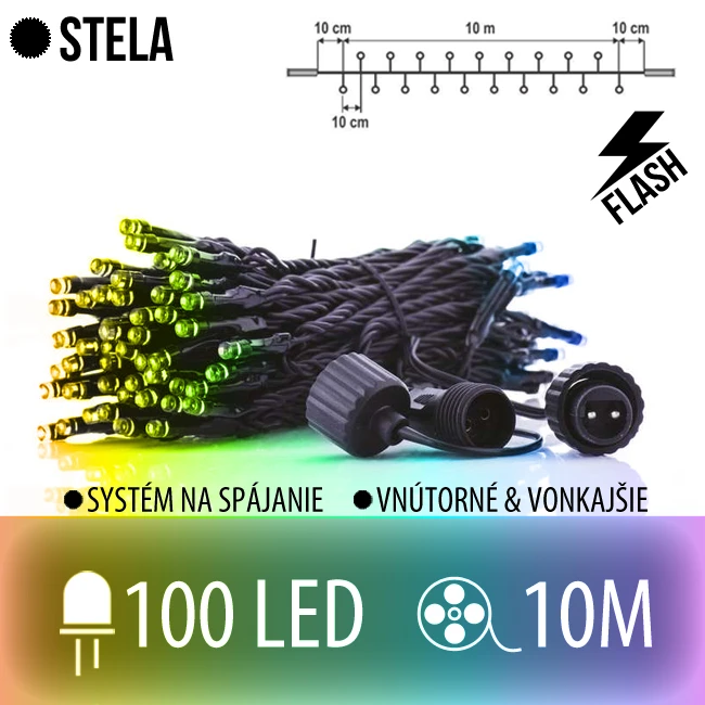 STELA spojovateľná LED svetelná reťaz CLUSTER vonkajšia FLASH - 100LED - 10M Multicolour