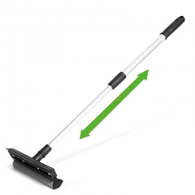 Jednoducho a rýchlo môžete očistiť čelné sklo vášho auta pomocou tohto teleskopického čističa. Špongia so sieťkou rýchlo uvoľnia nečistoty . Na odstránenie vody a iných kvapalín slúži stierka na druhej strane.Ideálna na čistenie čelného skla, okien, a na akékoľvek sklenené povrchy.Vďaka pružnej gumenej hrane môžete odstrániť vodu bez akýchkoľvek škrabancov a poškodenia skla.