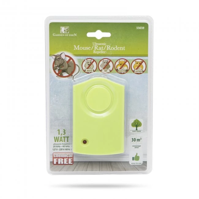 Jedná sa o elektronický odpudzovač škodcov, ktorý vyžaruje ultrazvukové vlny, ktoré môžu účinne odpudzovať myši, potkany a väčšinu nepríjemných škodcov 24 hodín denne. Vďaka svojmu dizajnovému vyhotoveniu nekazí vzhľad vášho domu. Zariadenie nezabíja škodcov len ich udržuje vo vzdialenosti od vášho domu. Prístroj dosahuje vhodnú účinnosť po 48 hodín od inštalácie. Nemusíte meniť batérie, zariadenie funguje z klasickej 230 V zásuvky, takto zabezpečí ochranu neustále.