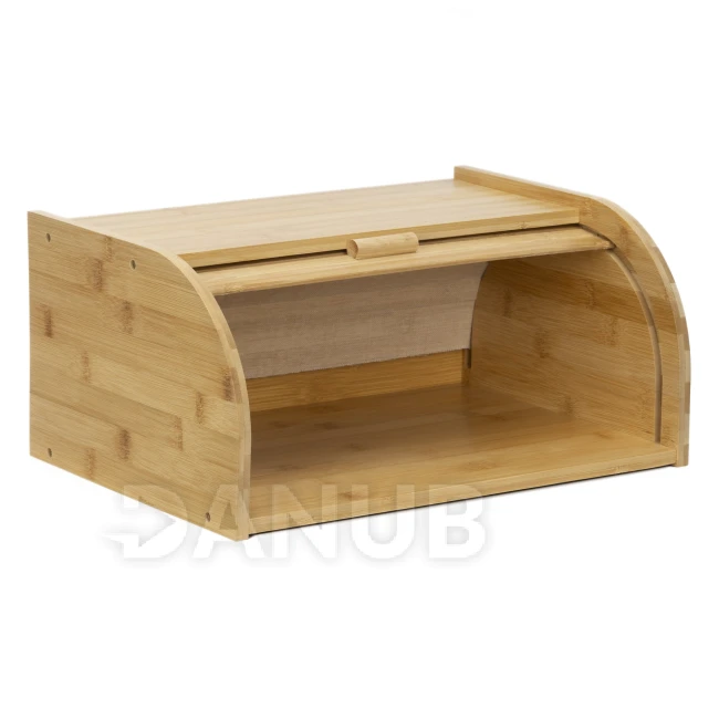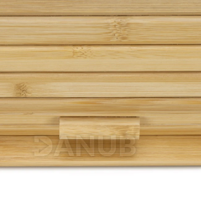 - Chlebník je vybavený bambusovou roletou, ktorá sa posúva pozdĺž bočných drážok.