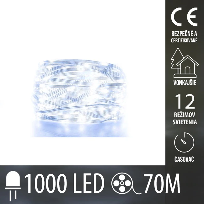 Vianočná Led DOT svetelná reťaz vonkajšia - 1000led - 70m - programy - časovač - studená biela