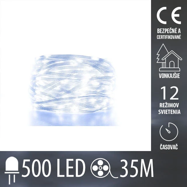 Vianočná Led DOT svetelná reťaz vonkajšia - 500led - 35m - programy - časovač - studená biela
