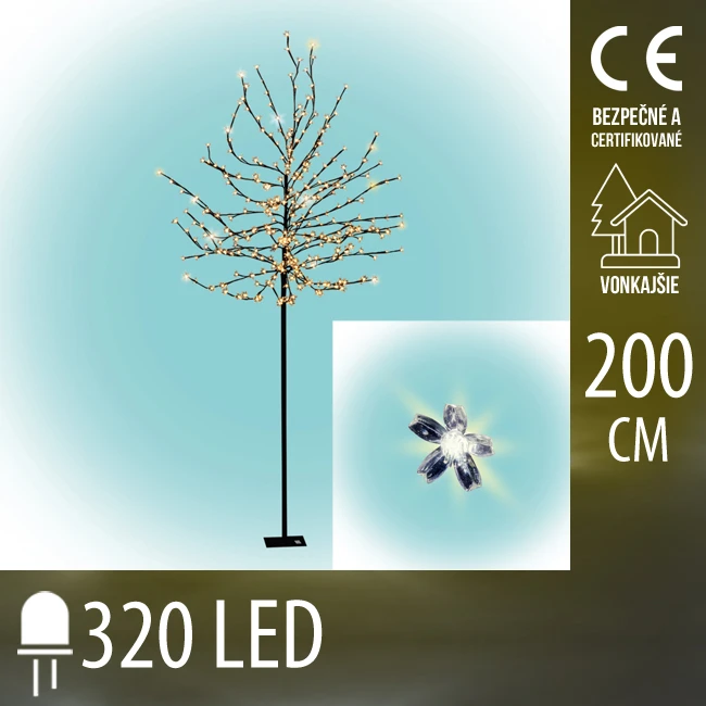 Vianočná led svetelná ozdoba - kvitnúca čerešňa - 320led - 2m - teplá biela