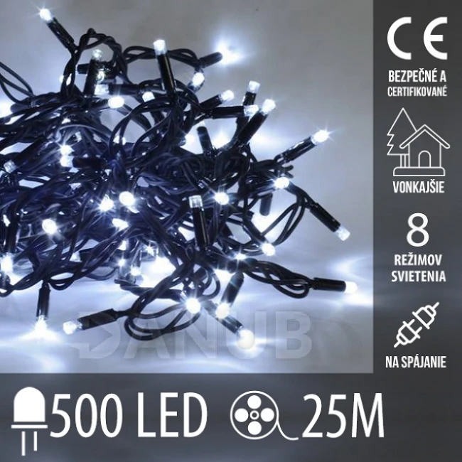 Vianočná led svetelná reťaz na spájanie vonkajšia- programy - 500led - 25m - studená biela